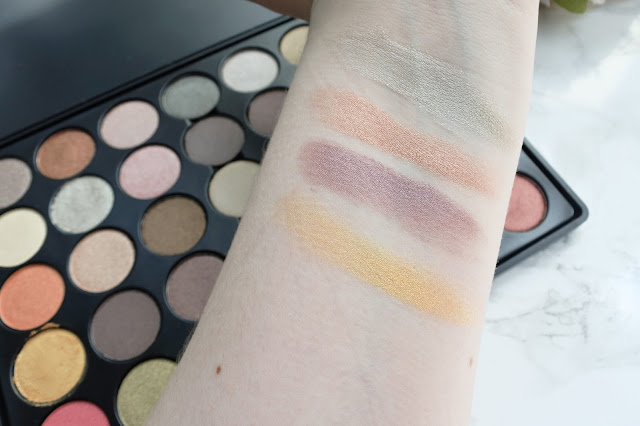 This palette contains alot of nudes and pink shades, which I was really surprised about as I expected the palette to be more colourful for a metallic palette. I did find that this makes 80% of the palette very wearable as these are shades that can be worn everyday and can be toned down if you’re working or just want a more nude eye. I also like that it has some brighter colours like the pink, orange and green.