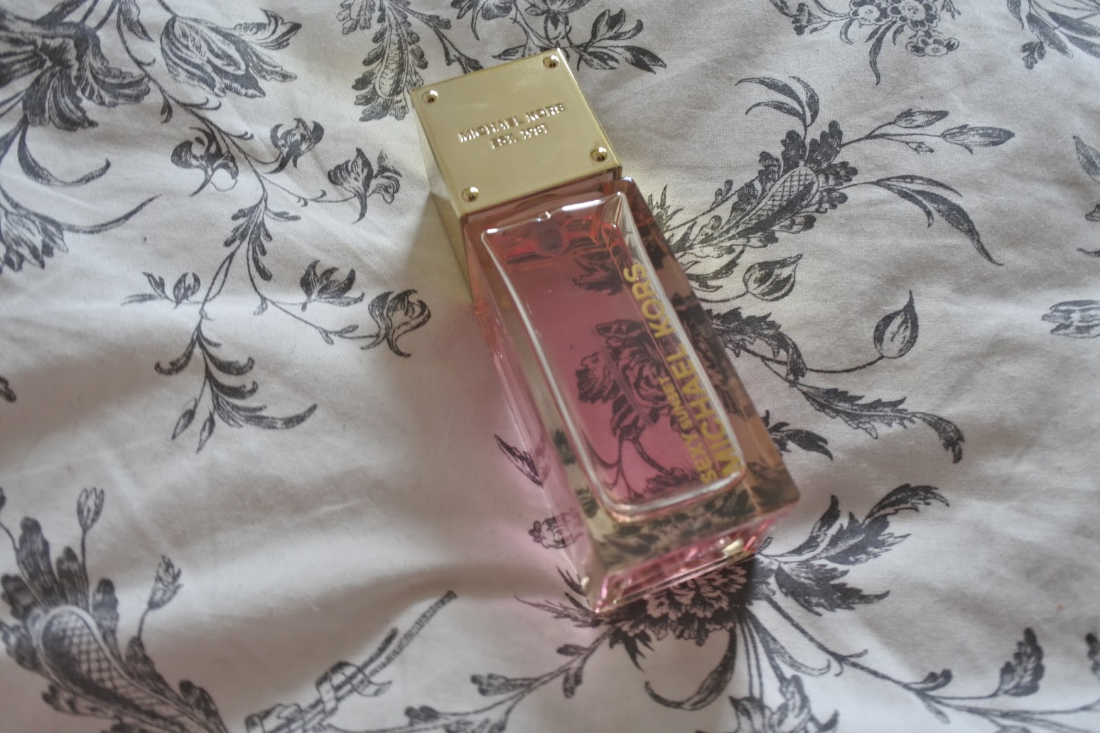 The bottle itself is very plan and just a long bottle with a metallic top. Its simple but quite elegant, the perfume is a beautiful pinkish red and looks like sunset in a bottle quite literally, its actually a little cute bottle. I love the fact that the name is engraved into the bottle the same way that they are under the face of the watches its great they match ( good branding!)