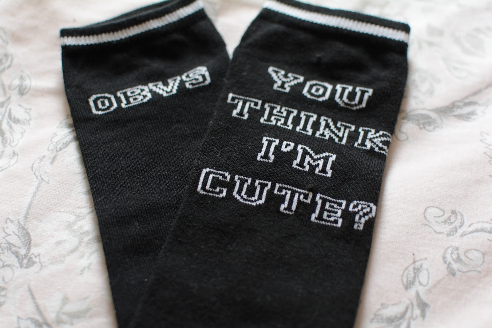The first thing I got were these super sassy socks! I absolutely loved the slogans on them and they are amazing. Also big win for black and white and no colours hahah, I believe these were £3 if you are interested in purchasing them, they are just fab.