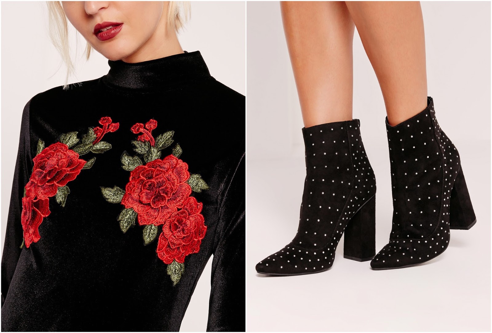 High Neck Flower Detail Velvet Bodycon Dress – Misguided £30